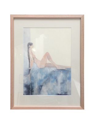 A figurative water colour framed in a Tasmanian oak box frame with a white mat board surround and UV glass.