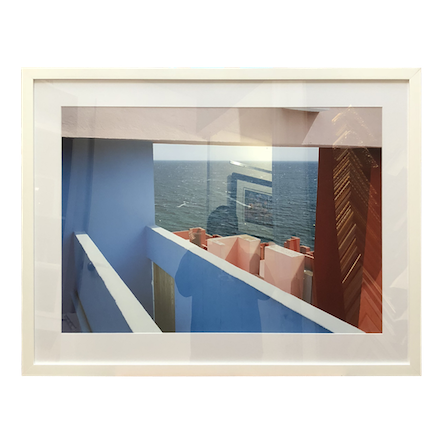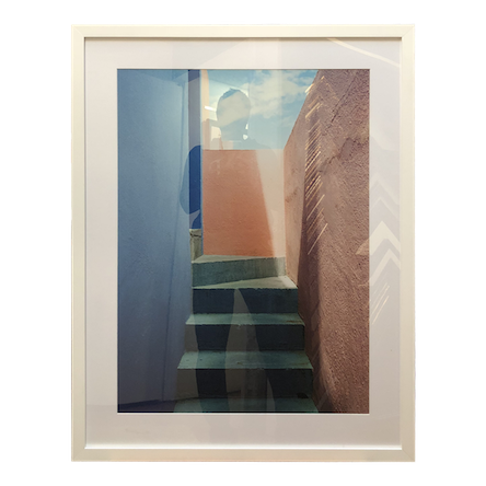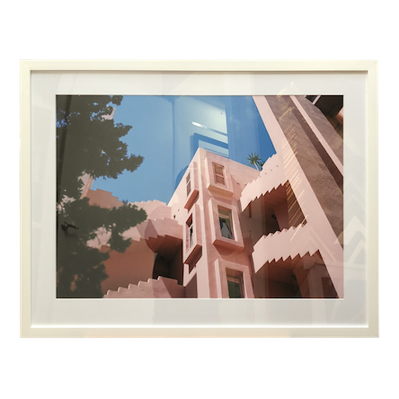 A contemporary coloured photo framed in a white box frame with an acrylic front and mat board surround.